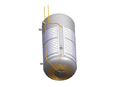An additional coil is mounted on the bottom of the tank increases the heat exchange area to provide more hot water and contributes to better efficiency.